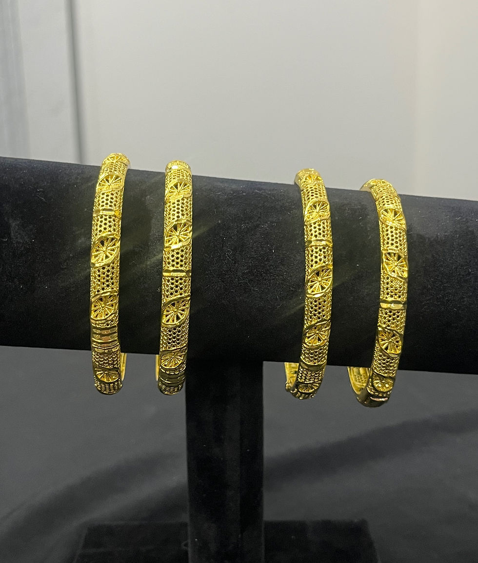 Engraved Gold Bangle Bracelets with Circular Motif Filigree Design - size 2.6.